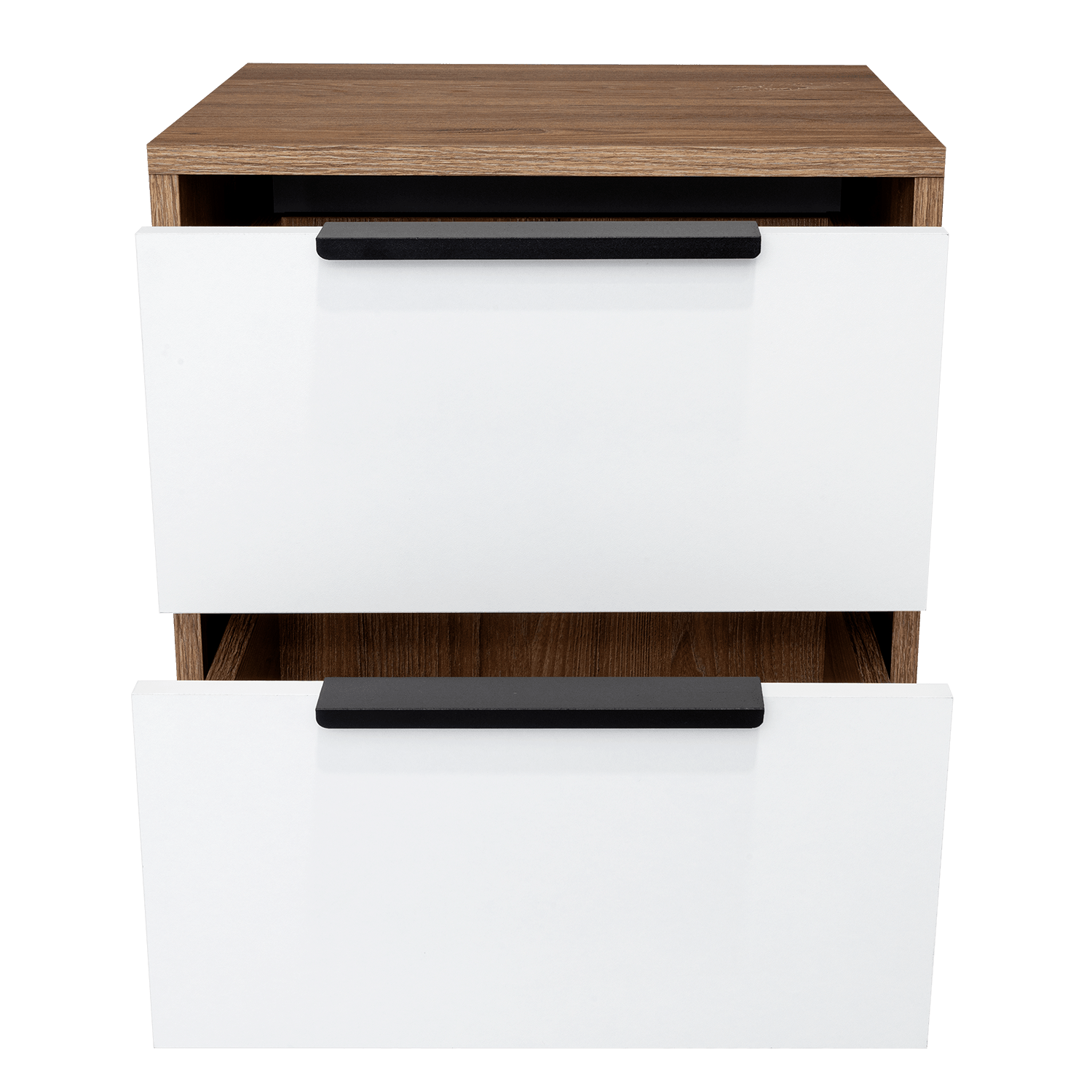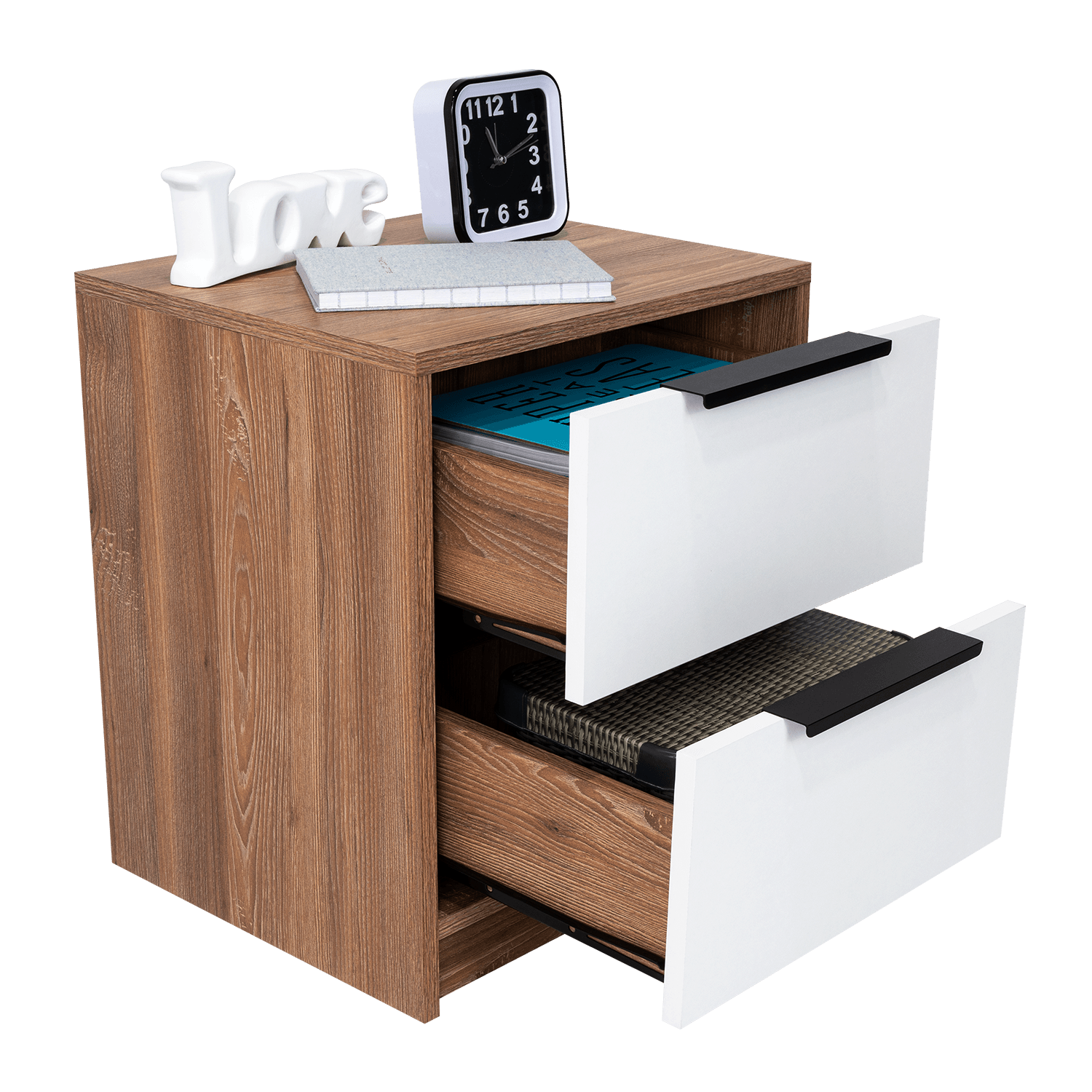 Table de chevet Wesley, couleur miel et blanc, avec deux tiroirs de rangement